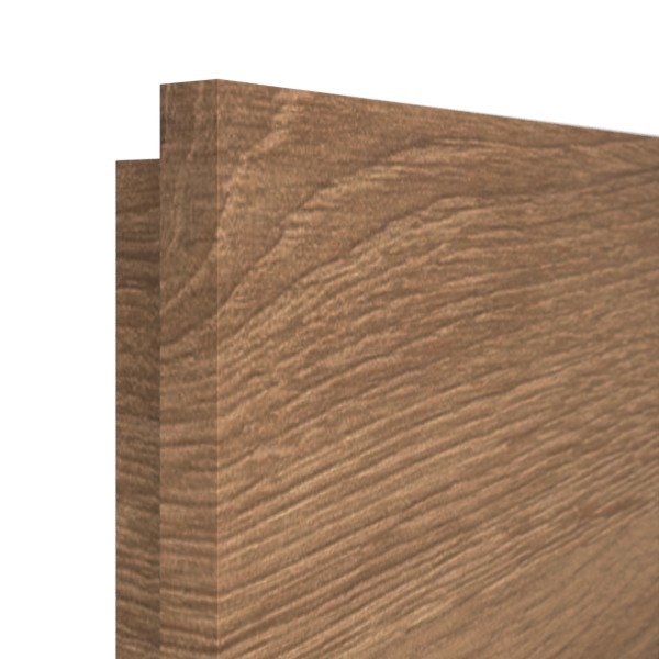 Na brązowym dekorze dębowym widać sęki i pierścienie roczne, co nadaje mu autentyczny wygląd. Dzięki wysokiej odporności na zarysowania, ścieranie i promieniowanie UV ten wygląd utrzymuje się przez długi czas. Szczególnym wyróżnikiem modelu są cztery poziome listwy.