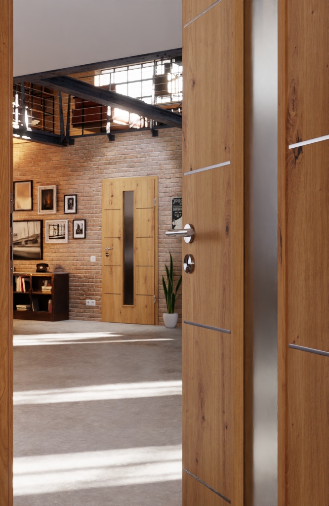 Stylowe drzwi pokojowe z kanciastymi krawędziami i odpornym na UV wykończeniem CPL: