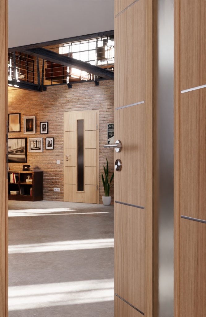Stylowe drzwi pokojowe z dwuczęściowymi zawiasami oraz zamkiem wielozadaniowym:
