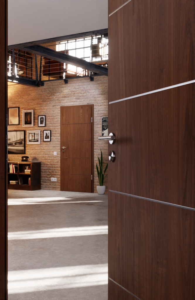 Naturalność dla Twoich wnętrz: Drzwi wewnętrzne w orzechu Trentino NU 717 z serii PortaLit od Westag zachwycają solidną konstrukcją.