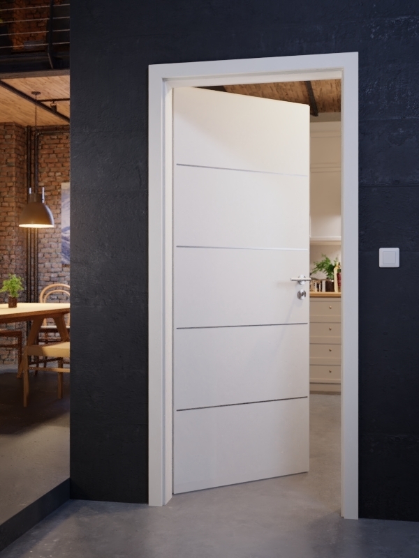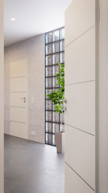 Z drzwiami Lineo w kolorze uni białym od producenta drzwi Westag doświadczysz prostego designu w połączeniu z elegancką mieszanką materiałów: