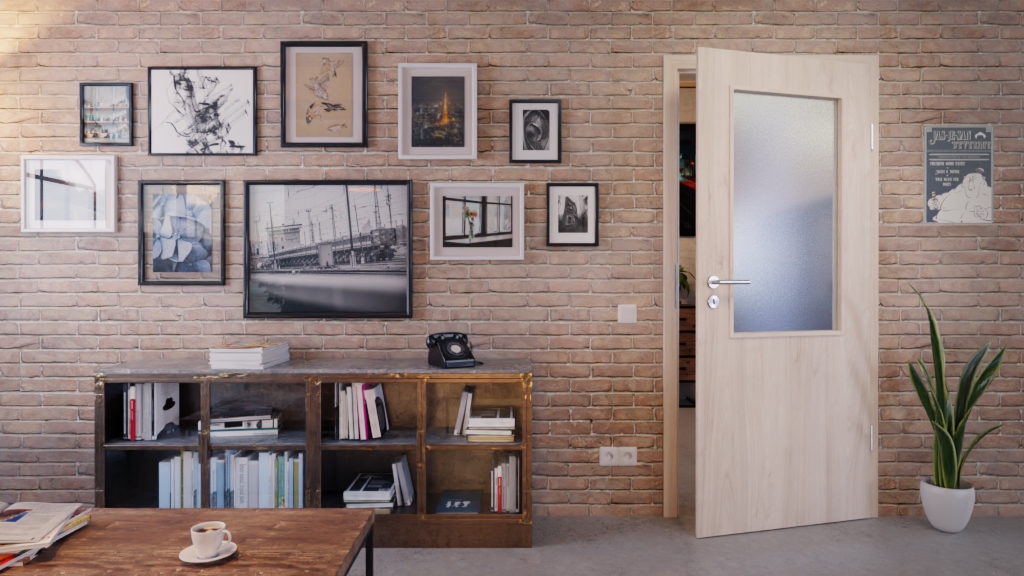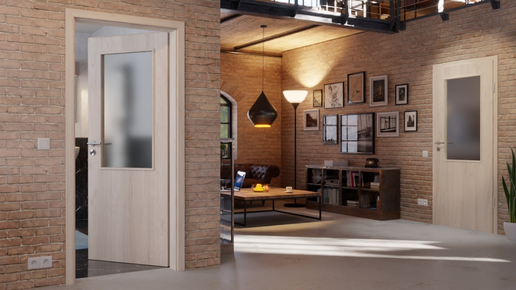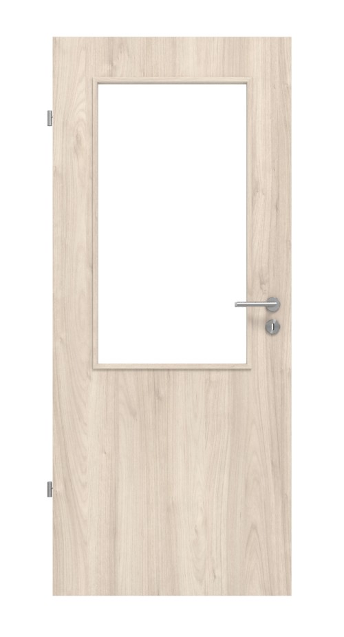 Oryginalna dekoracja drewniana jest odporna na zarysowania i ścieranie. Powierzchnia CPL jest odporna na rozpuszczalniki i wilgoć, co ułatwia pielęgnację. W skrzydle drzwi znajduje się prostokątny otwór na światło.