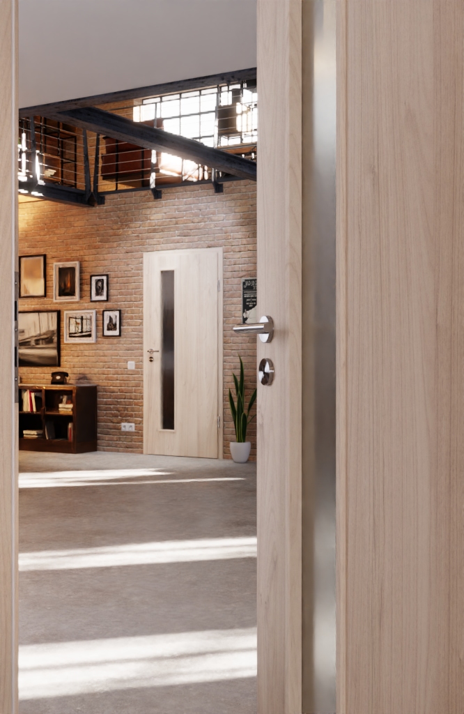 Dekor CPL przypomina drewno orzechowe, wprowadzając naturalność i ciepło do Twojego domu. Nie musisz się martwić o zarysowania i uderzenia dzięki stabilnym właściwościom powierzchniowym. Dzięki wąskiemu przeszkleniu światło przenika do Twoich pomieszczeń.