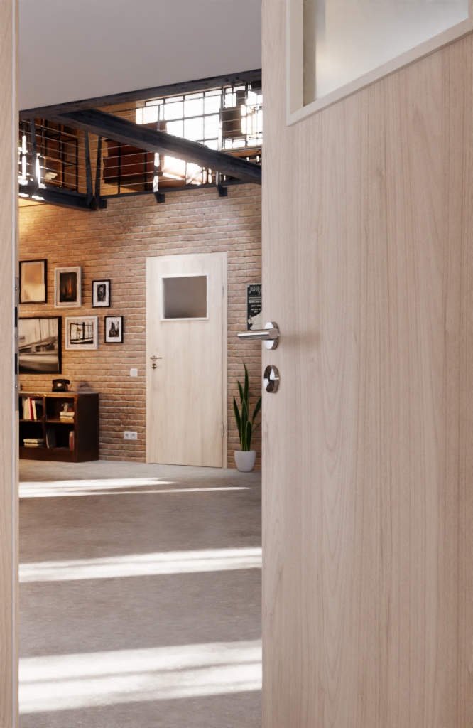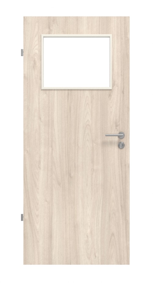 Możesz cieszyć się naturalnym drewnianym dekorem dzięki właściwościom odpornym na ścieranie, zarysowania i uderzenia. Łatwą pielęgnację zapewnia niezawodna odporność na wilgoć, ciepło i rozpuszczalniki. Dzięki prostokątnemu przeszkleniu w górnej części skrzydła drzwiowego do Twojego domu wpada światło.