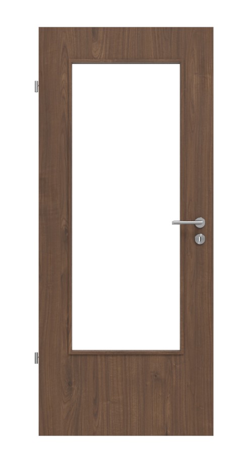 Na ciemno-brązowym dekorze drewnianym widoczne są wyraźne sęki i linie rocznych przyrostów. Łatwa pielęgnacja zapewnia odporność na rozpuszczalniki i wilgoć. Duży szkło wypełnienie zapewnia jasne pomieszczenia.