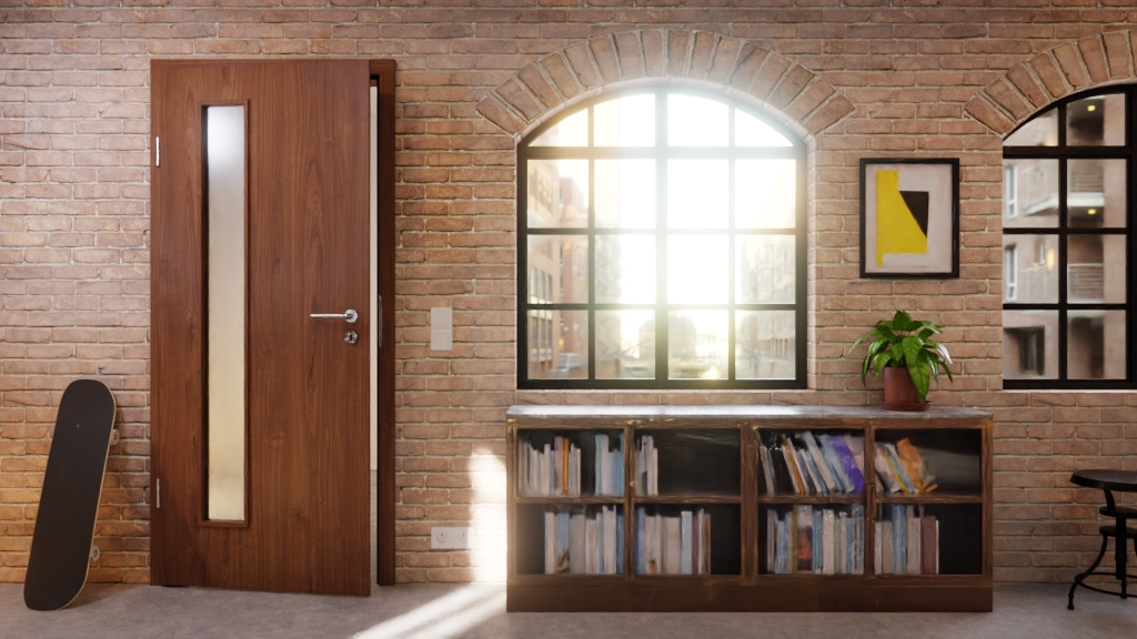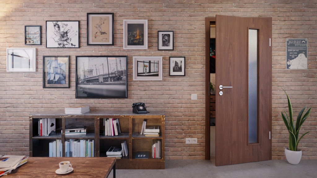 Ozdobne drewno odporne na zarysowania i ścieranie ma ciemnobrązowy odcień. Wysoka odporność na obciążenia mechaniczne, rozpuszczalniki i promieniowanie UV zapewnia długotrwały charakter. Po stronie zawiasów znajduje się wąski otwór świetlny.