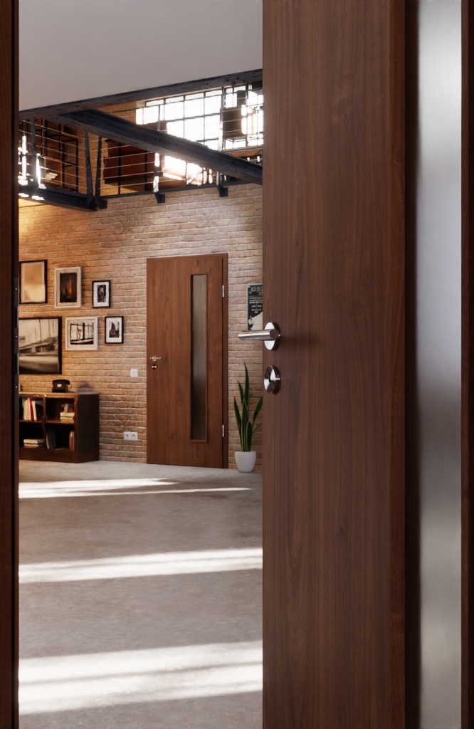 Dla ciepłej atmosfery w pomieszczeniu: Drzwi wewnętrzne w orzechu Trentino NU 717 z serii PortaLit od Westag składają się z solidnych komponentów.