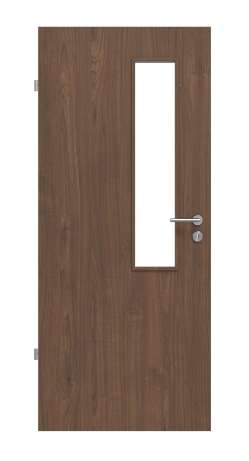 Na ciemno-brązowym dekorze drewnianym widoczne są wyraźne linie słojów i odcienie. Ani obciążenia mechaniczne, ani światło, ani rozpuszczalniki nie wpływają na wytrzymałą powłokę. W pobliżu zamka znajduje się wąski otwór świetlny.