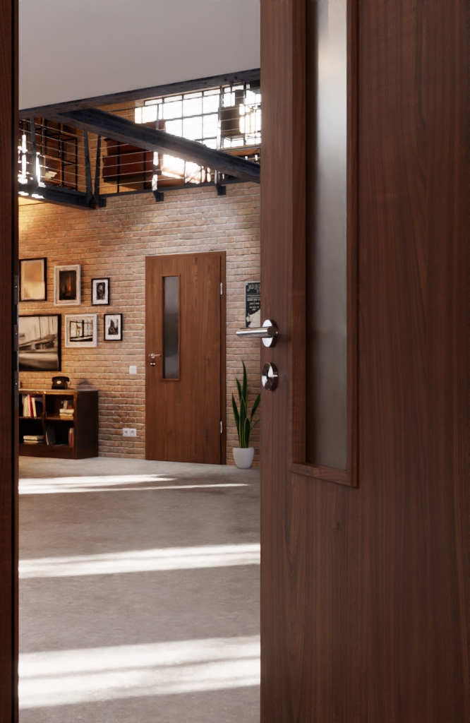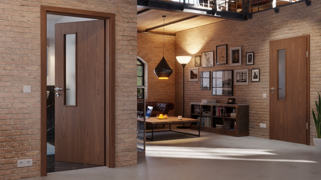 Prostokątne skrzydło drzwiowe wyposażone jest w rdzeń z płyty wiórowej oraz 3 mm grubą powłokę. Wytrzymały charakter znajduje odzwierciedlenie w klasie obciążenia S. W standardowym wyposażeniu znajdują się dwuczęściowe zawiasy oraz zamek wielozadaniowy.