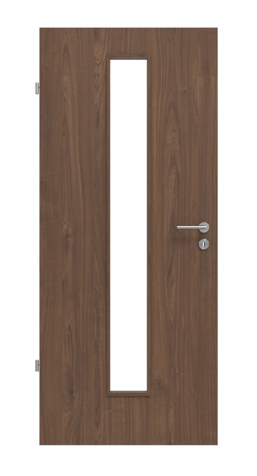 Ciemnobrązowe pokrycie CPL charakteryzuje się liniami rocznymi i odcieniami, co tworzy naturalny wygląd drewna. Model jest odporny na zarysowania i ścieranie. Rozpuszczalniki i światło UV zapewniają łatwą pielęgnację. W środku znajduje się wąski przeszklenie, które zwiększa jasność w Twoich czterech ścianach.