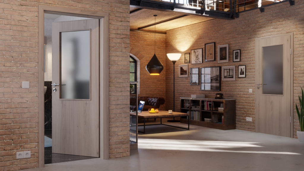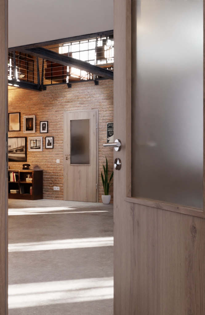 Elegancka wewnętrzna drzwi z dwuczęściowymi zawiasami i łatwą w pielęgnacji powłoką CPL: