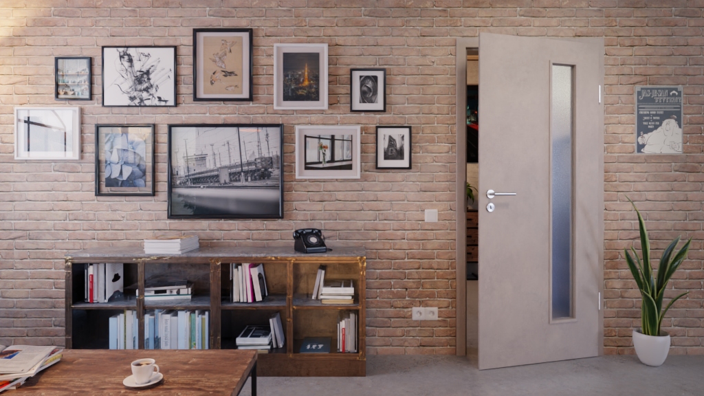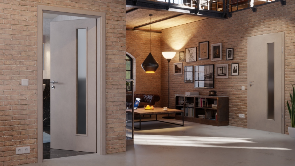 Wysoka stabilność na zarysowania, uderzenia i ścieranie charakteryzuje powierzchnię CPL. Szare dekoracje drewniane zachwycają naturalnym i elastycznym wyglądem. Po stronie zawiasów znajduje się wąski otwór świetlny.