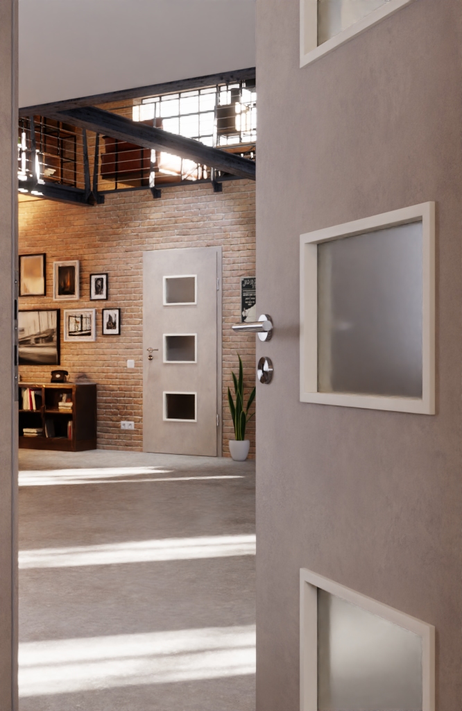 Naturalność dla Twoich wnętrz: Wytrzymałe komponenty drzwi wewnętrznych w Semento BN 434 z serii PortaLit od Westag obiecują długą żywotność.
