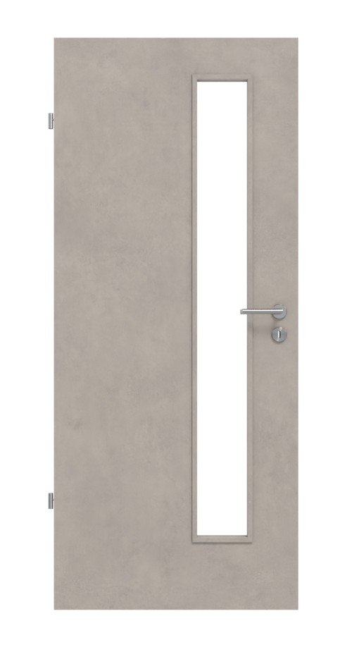 Odporna na zarysowania i ścieranie powłoka CPL w szarym designie drewna jest nałożona na skrzydło drzwi. Ponieważ powłoka jest odporna na powszechnie stosowane środki czyszczące i promieniowanie UV, długo zachowuje swój urok. Po stronie zamka wąskie przeszklenie zapewnia jasną atmosferę w Twoich pomieszczeniach.