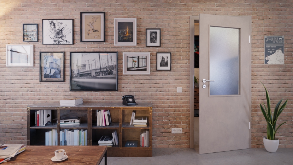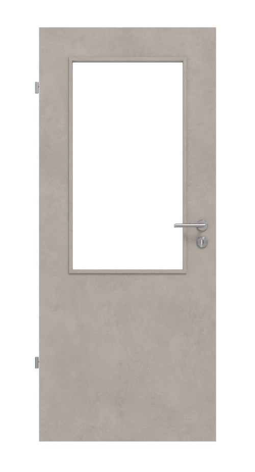 Odporny na zarysowania i ścieranie dekor z drewna ma szary odcień. Powszechnie stosowane środki czyszczące i światło UV nie mają wpływu na warstwę CPL. W górnej części skrzydła drzwi znajduje się szkło.