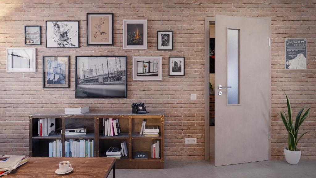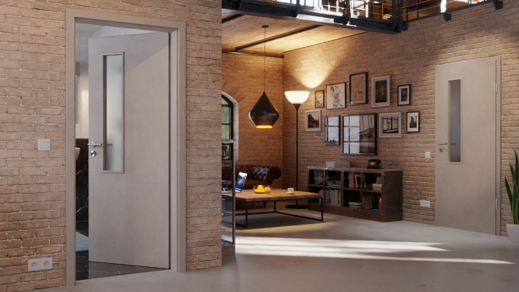Szare dekoracje drewniane są stabilne na zarysowania, uderzenia i promieniowanie UV. Dzięki odporności na powszechnie stosowane środki czyszczące, można łatwo usunąć codzienny kurz z powłoki CPL. W pobliżu zamka drzwiowego wąski przeszklenie przyczynia się do większej jasności w Twoim domu.
