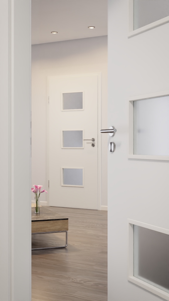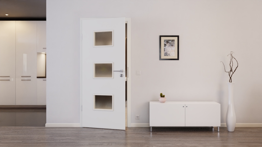 WESTAG drzwi wewnętrzne sira biały (podobny do RAL 9003) WestaLack Soft z przeszkleniem LA-3Q