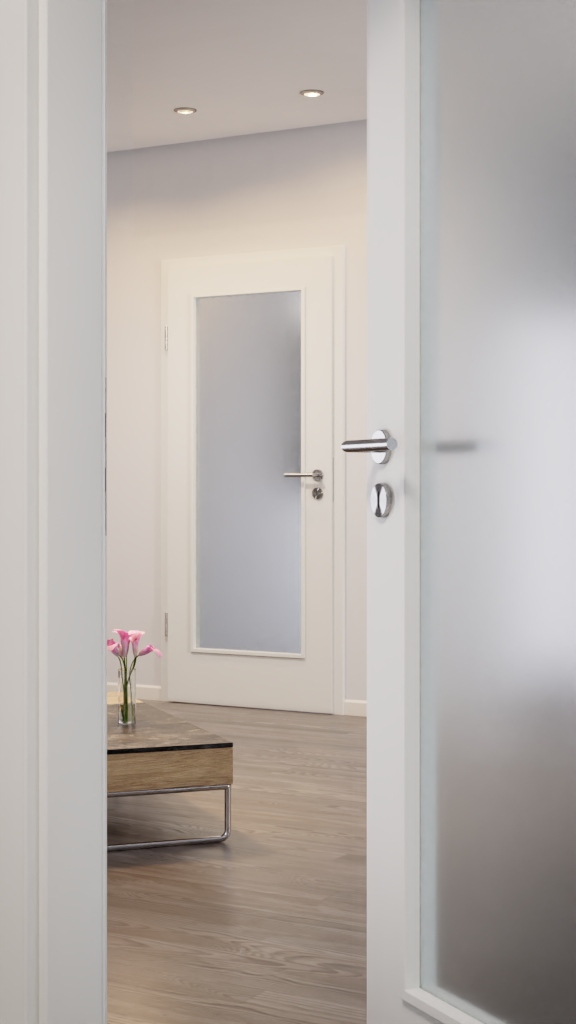 • Standardowe wykonanie kasety zamka: Zamek pokojowy BB klasa 1, trzpień 55 mm, czoło w kolorze srebrnym