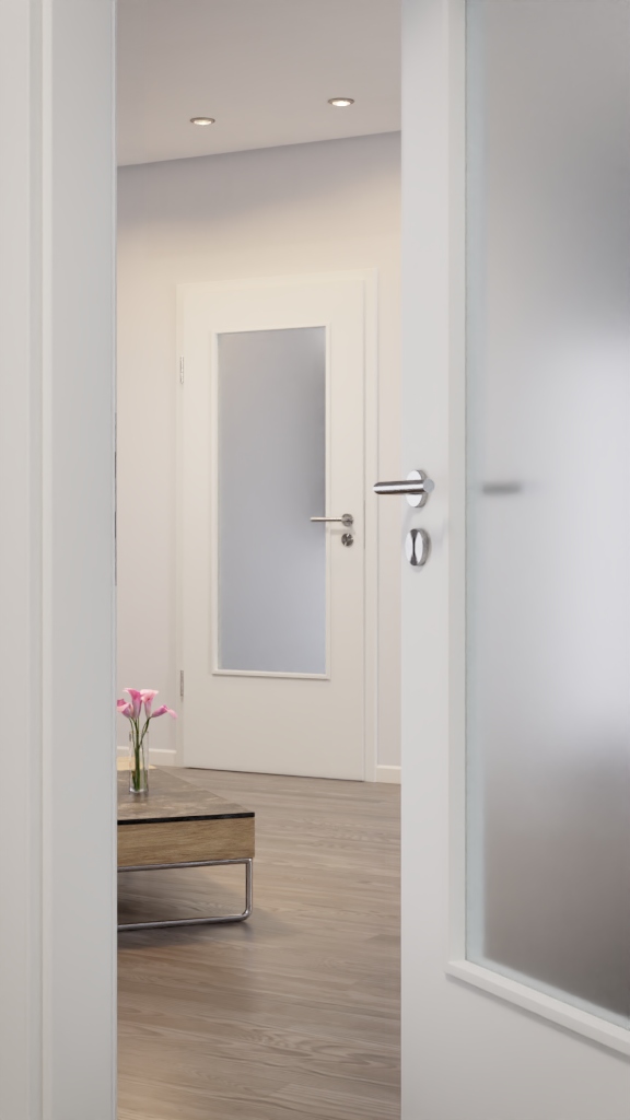 WESTAG drzwi wewnętrzne sira biały (podobny do RAL 9003) WestaLack Soft z wycięciem na szybę LA-DIN