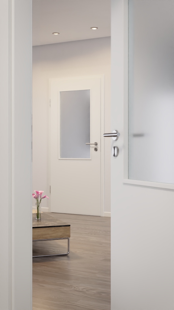 • Ponadczasowe drzwi wewnętrzne w kolorze sira biały z powierzchnią WestaLack-Soft