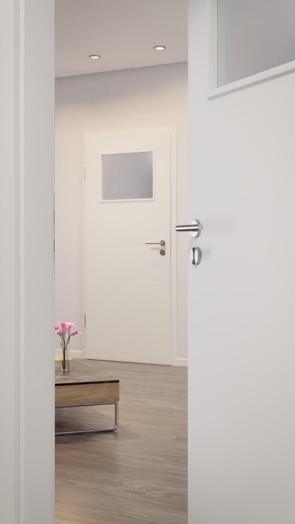 • Standardowe wykonanie kasety zamka: Zamek pokojowy BB klasa 1, trzpień 55 mm, czoło w kolorze srebrnym