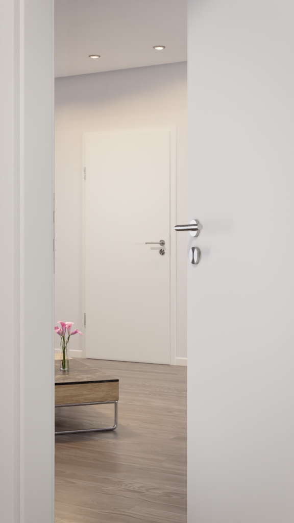 • Standardowe wykonanie kasety zamka: Zamek pokojowy BB klasa 1, trzpień 55 mm, czoło w kolorze srebrnym