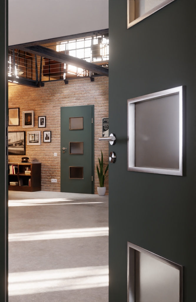 • Grubość skrzydła drzwiowego 40 mm z płytą wierzchnią 3 mm