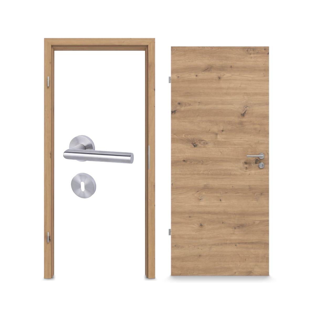 Kompletny zestaw drzwi w jednym kliknięciu: Ten zestaw drzwi wewnętrznych w Artis Dąb Cross od Westag zawiera skrzydło drzwiowe, pasującą ościeżnicę oraz klamkę.