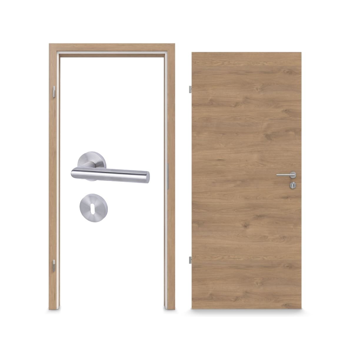 Komfortowy zestaw: Zestaw drzwi wewnętrznych w dębie Adria Cross od Westag zawiera zarówno skrzydło drzwiowe, jak i pasującą ościeżnicę oraz klamkę.