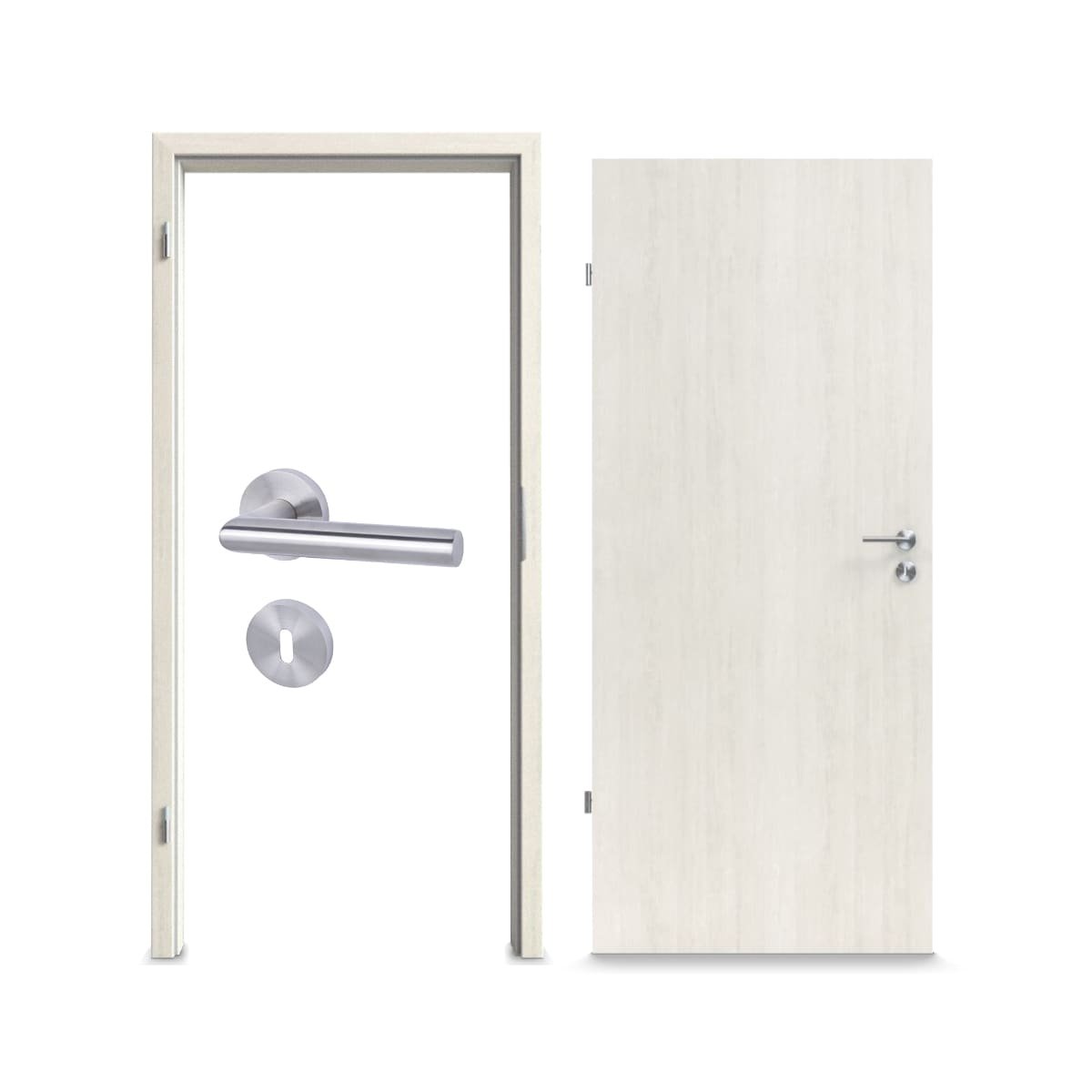 Wszystkie komponenty do Twojego projektu drzwi: Ten zestaw drzwi wewnętrznych w białym piniowym kolorze od Westag spełnia wszystkie oczekiwania, ponieważ zawiera zarówno skrzydło drzwiowe, odpowiednią ościeżnicę, jak i klamkę.