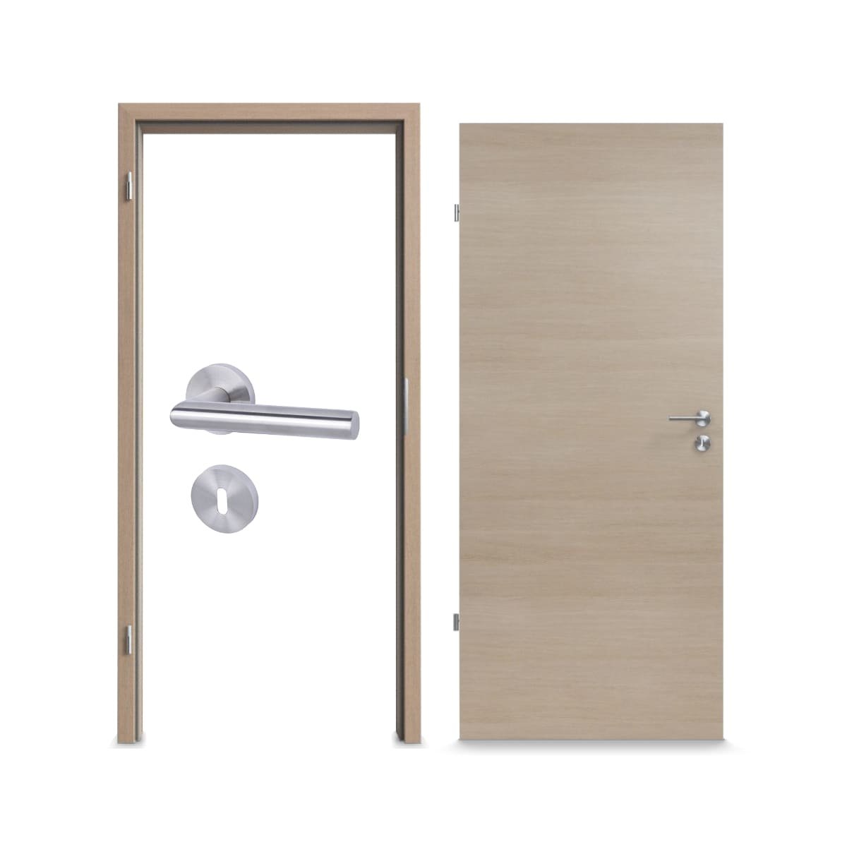 Efektywne zakupy: Zestaw drzwi wewnętrznych w jasnym pinie Cross od Westag zawiera skrzydło drzwiowe oraz pasującą ościeżnicę. Zestaw uzupełnia klamka.