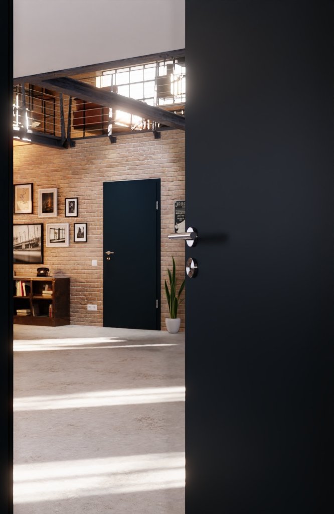 Wytrzymałe drzwi wewnętrzne z 2-częściowymi zawiasami i zamkiem wielozadaniowym: