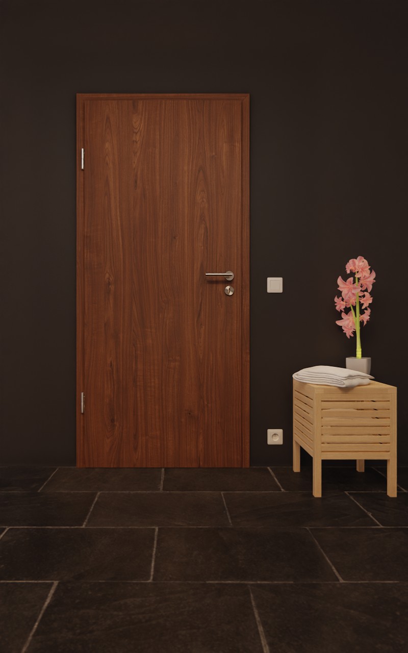 Skutecznie chroni przed wodą i wilgocią: Drzwi do pomieszczeń wilgotnych w kolorze orzecha Trentino NU 717 z serii PortaLit od Westag zachwycają naturalną elegancją.
