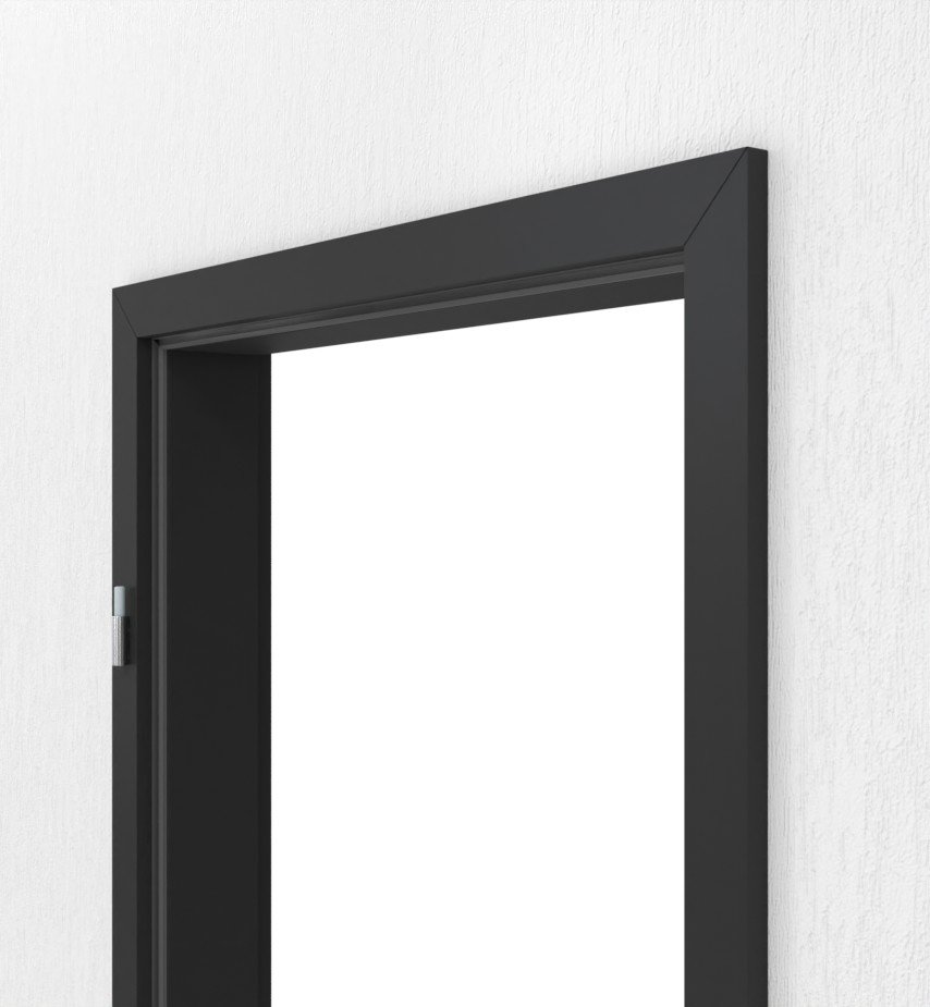 Idealne wsparcie dla drzwi wewnętrznych: Ościeżnica w kolorze Lunit Schwarz (podobny do RAL 9004) z kanciastą krawędzią (promień 2 mm) marki Westag stanowi doskonałe wykończenie Twojego projektu drzwi pokojowych.