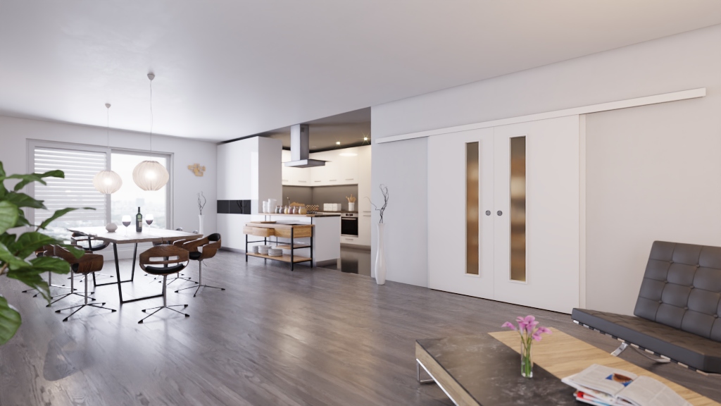 W przypadku tych drzwi przesuwnych podwójnych obowiązuje motto: Czysty design na dwóch skrzydłach dla Twojego domu!