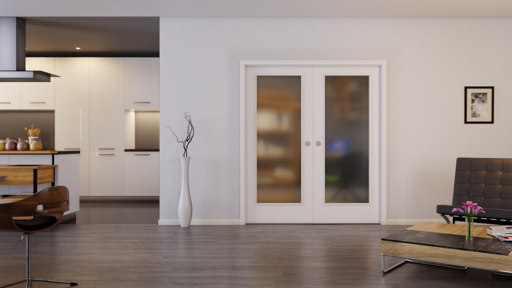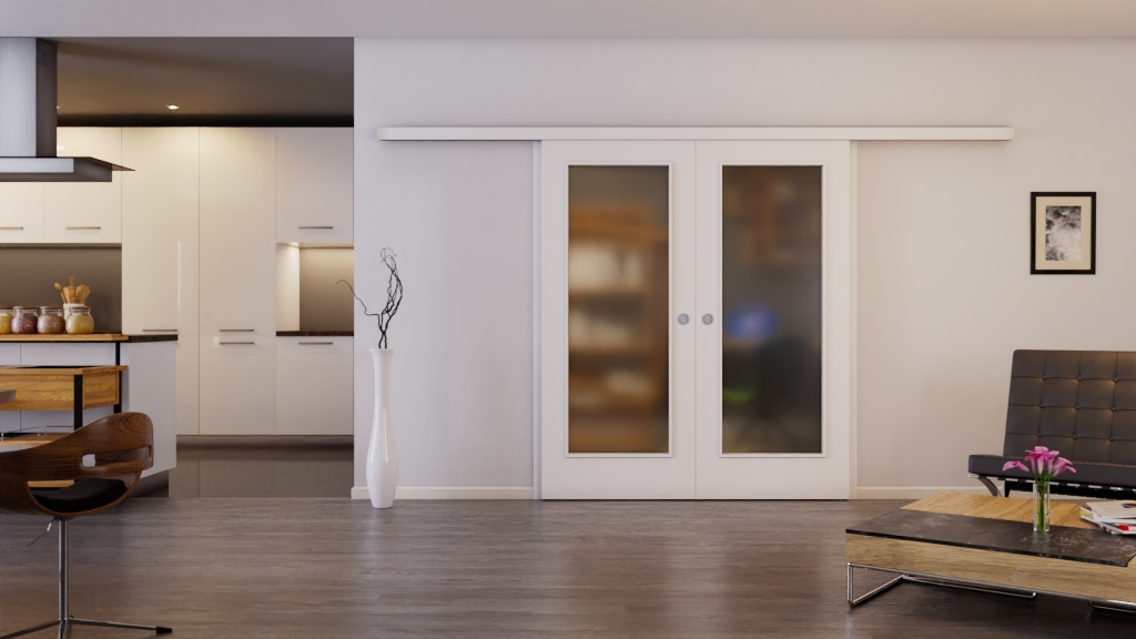 Duża powierzchnia świetlika, umieszczona na każdym skrzydle drzwi, zapewnia jasność. Jasne wykończenie podkreśla ponadczasowy design drzwi przesuwnych podwójnych.