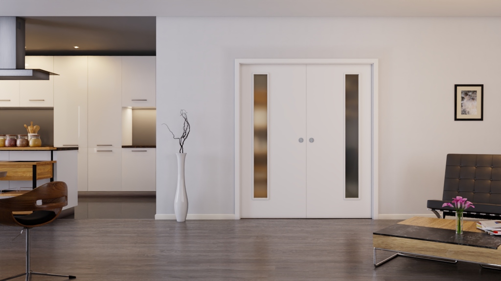 Drzwi przesuwne z dwoma skrzydłami w kolorze Arctic White A 222 PortaLit od Westag: