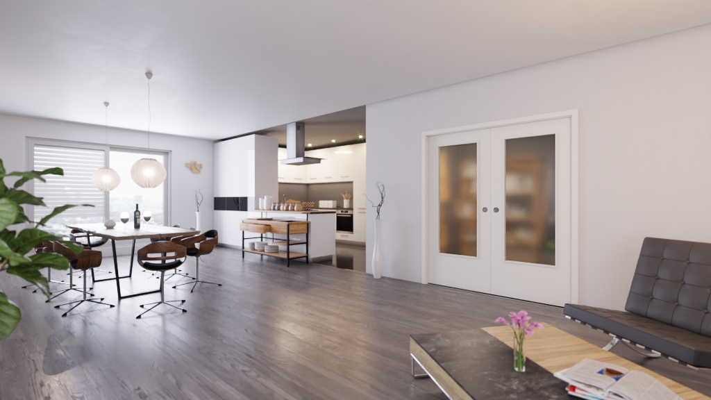 Przestronne rozwiązanie: Podwójne drzwi przesuwne LA-DIN w Arctic White RAL 9016 od Westag to wysoka jakość produktu i wyrazisty design.
