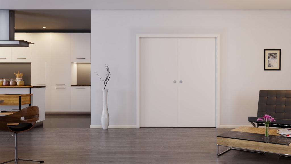 Drzwi przesuwne z dwoma skrzydłami w kolorze Arctic White (RAL 9016) od Westag:
