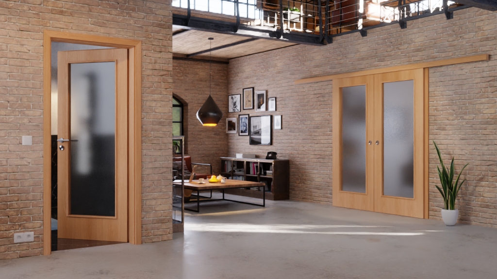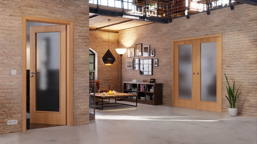 Rdzawy dekor bukowy rozwija wspaniały wygląd drewna na gładkiej powierzchni CPL. Każde skrzydło drzwi ma duże przeszklenie, które zapewnia światło i jasność.