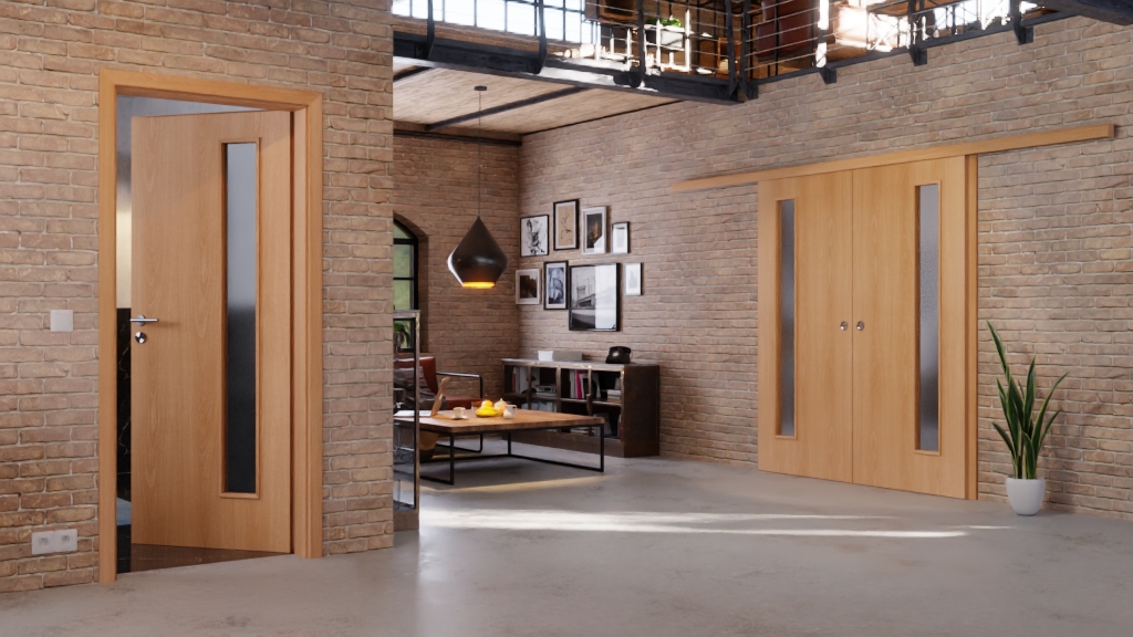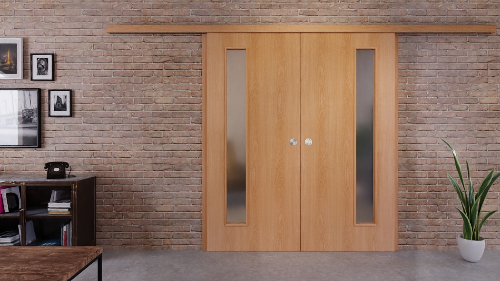 Płyta wiórowa stanowi stabilną konstrukcję każdego skrzydła drzwi. Grubość skrzydła drzwi wynosi 40 mm. Dzięki łatwej obsłudze podwójne drzwi przesuwne można obsługiwać bez barier. Gładka powierzchnia CPL jest odporna na zarysowania i ścieranie oraz łatwa do czyszczenia i pielęgnacji.