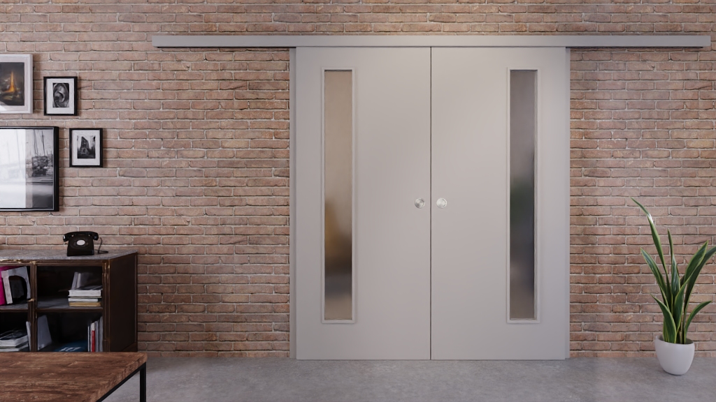 Podwójne drzwi przesuwne w jasnoszarym A 402 PortaLit marki Westag: