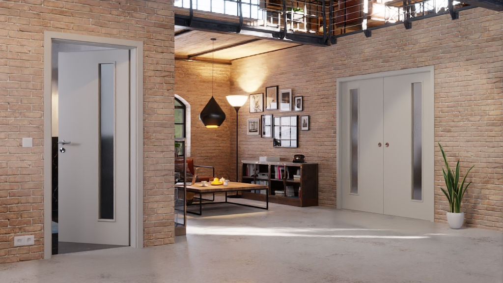 Boki zawiasów charakteryzują się cienkimi pasami świetlnymi, które wpuszczają światło do Twoich pomieszczeń. Jasnoszara powierzchnia CPL jest gładka i emanuje odrobiną stylu industrialnego.