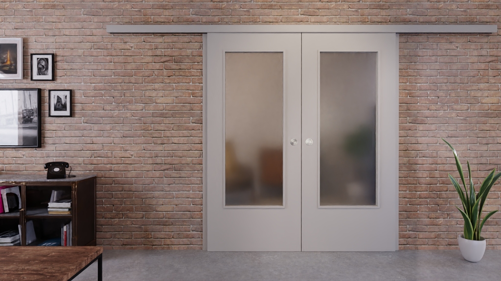 Drzwi przesuwne z dwoma skrzydłami w jasnoszarym A 402 PortaLit od Westag: