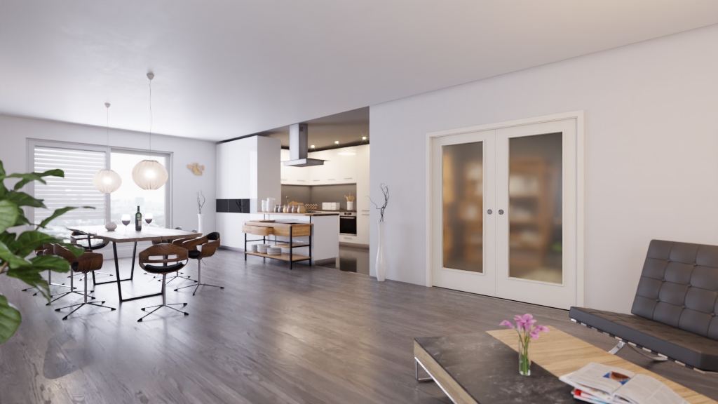 Prawdziwy cud przestrzeni: Dzięki drzwicom przesuwnym podwójnym LA-1000 w klasycznej bieli A 223 PortaLit od Westag, Twojemu domowi zostanie podarowane więcej miejsca na aranżację wnętrz.