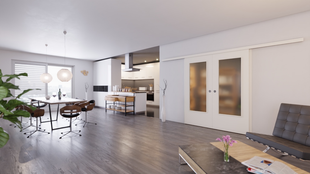 Te podwójne drzwi przesuwne to wspaniała kompozycja z klarownym konceptem przestrzennym i wysoką funkcjonalnością!