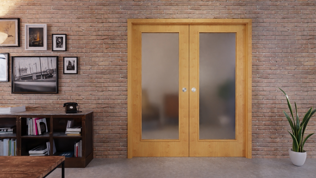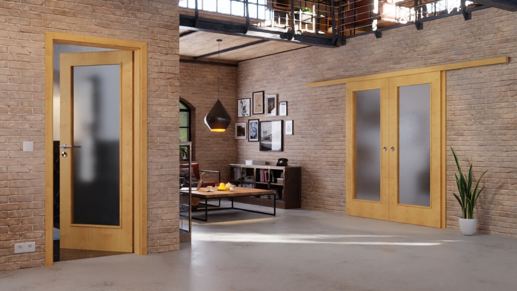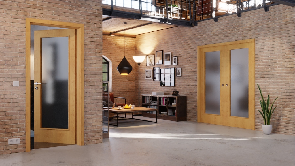 Modny wygląd drewna tworzy rustykalny klimat. Oba skrzydła drzwi CPL są gładkie i mają duże przeszklenie.