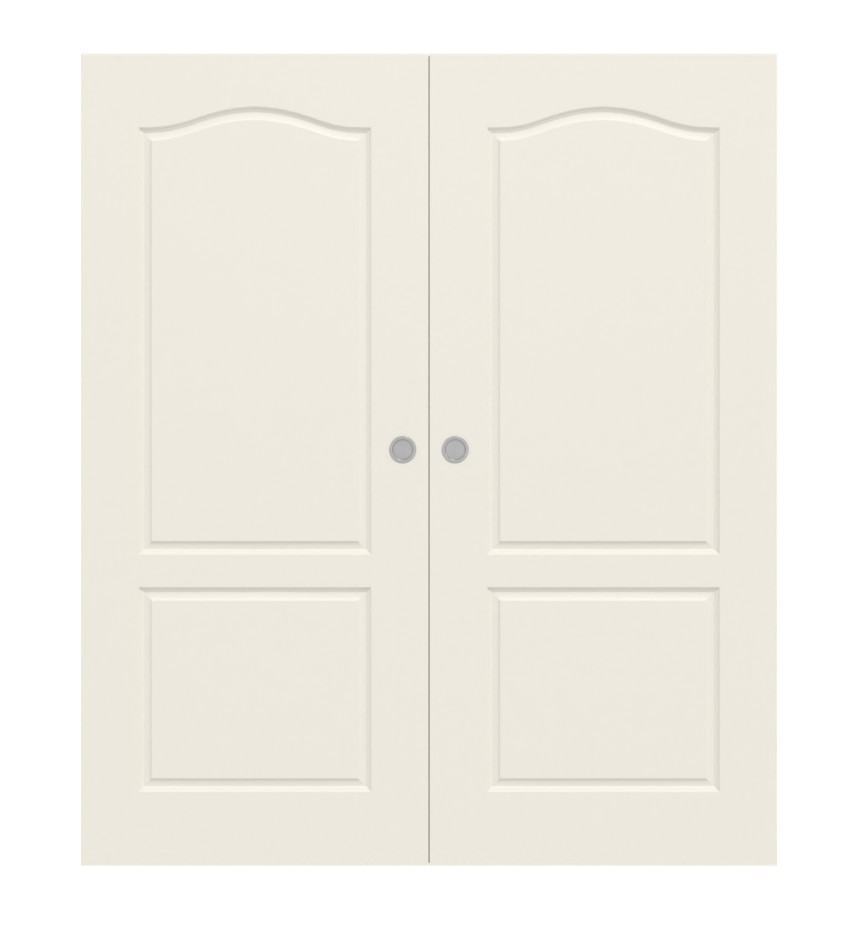 Podwójne drzwi przesuwne z jasną powierzchnią lakieru białego to prawdziwy klasyk. Atrakcyjna optyka wypełnienia manifestuje strukturalny wygląd z dwoma frezowanymi prostokątami na każde skrzydło drzwi.