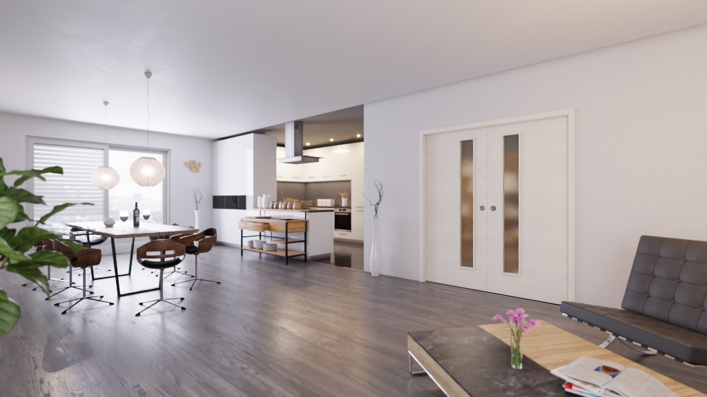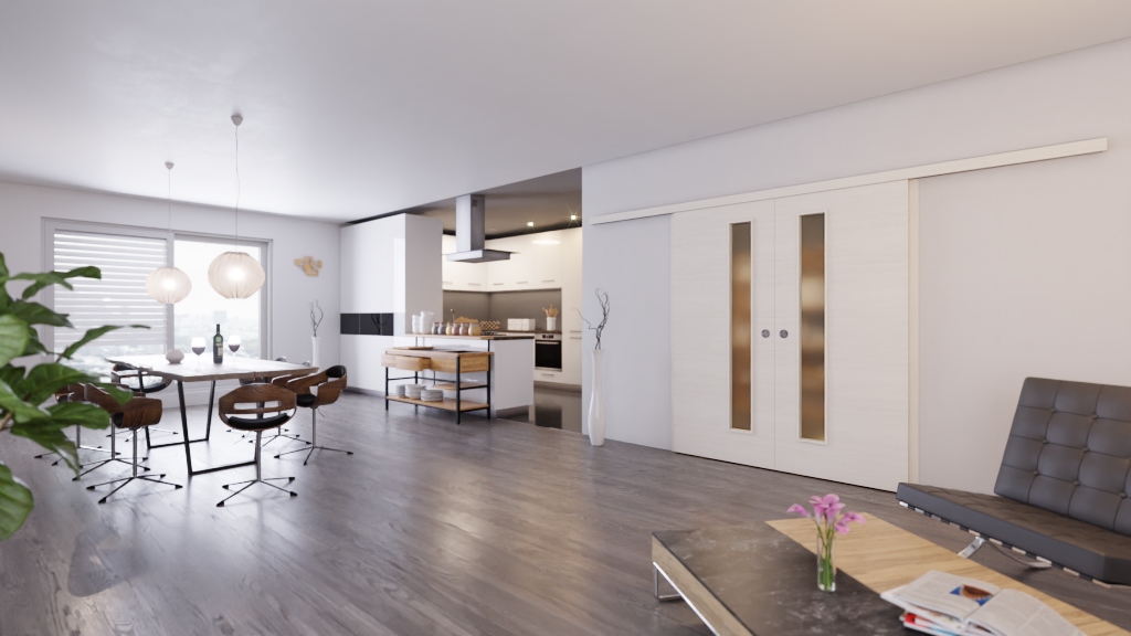 Te drzwi przesuwnym podwójnym to wspaniała kompozycja z klarowną koncepcją przestrzenną i wysoką funkcjonalnością!