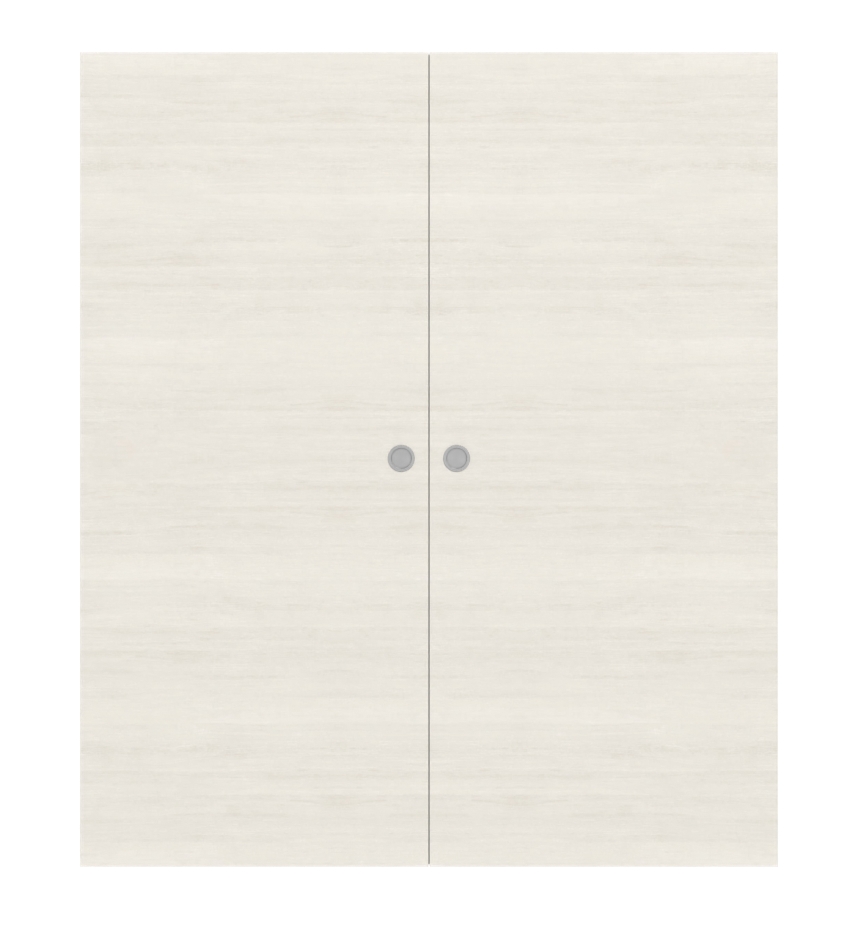 Matowo-błyszcząca powłoka ożywia powierzchnię CPL. Filigranowe i subtelne odcienie dekoru drewnianego w sosnie białej Cross tworzą imponujący i naturalny charakter podwójnych drzwi przesuwnych.
